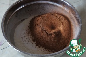 В средней миске смешать вместе муку, какао-порошок, соду и соль, отставить в сторону.