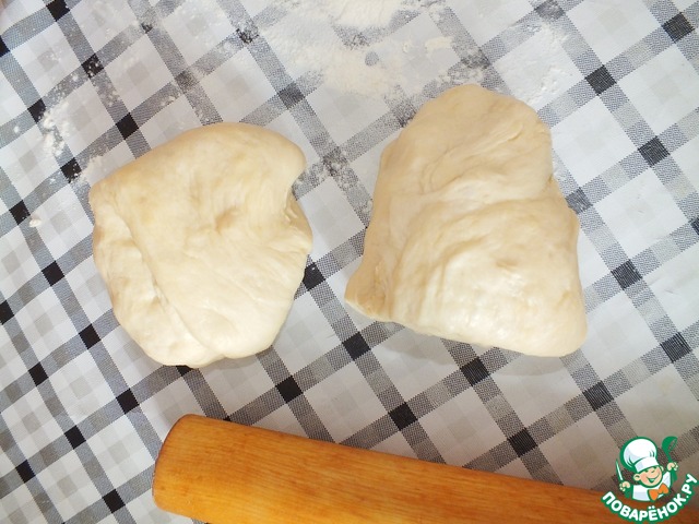 Каждую часть раскатать в прямоугольный пласт и смазать мягким сливочным маслом