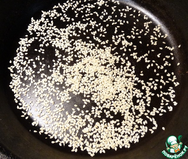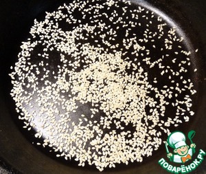 За это время поджарьте в сухой чашке мультиварки кунжутное семя. -