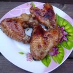 Достаньте куриные крылышки, а в оставшийся маринад добавьте 50 мл горячей воды и подержите минут 5. У вас будет ещё и вкусный соус. -