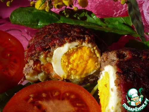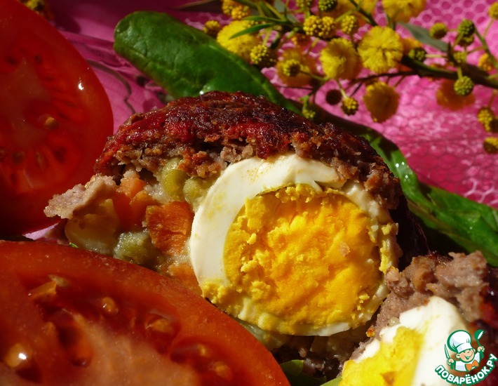 Рецепт «Мясной рулет с яйцом и овощами»: