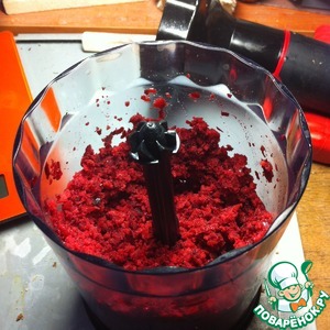 200 гр. замороженной вишни перемолоть в блендере в кашу. Я, на всякий случай, использовала лезвия для колки льда, но не думаю, что это обязательно.
