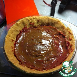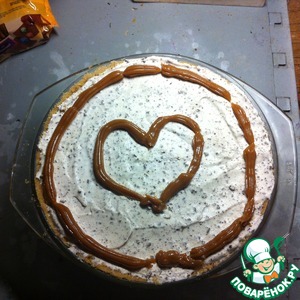 Поверх сгущенки выложить поломанное шоколадное печенье.