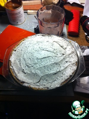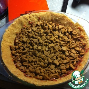 Пока заготовка схватывается, 70 гр. шоколадного печенья разломать на маленькие кусочки.