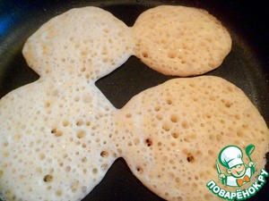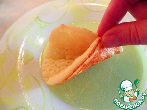Выпекаем на чуть промасленной сковороде с антипригарным покрытием маленькие блинчики, только на одной стороне. Когда влага с поверхности блинчика уйдет, снимаем его со сковороды.