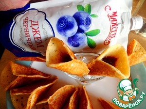 На дно каждого блинчика выдавить по 1ч. л. черничного джема ТМ "Махеевъ".