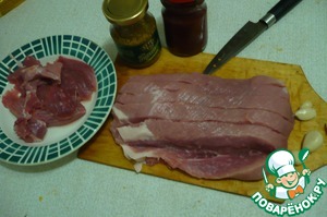 • Теперь формируем кусок для нашей книжки. Кладем и выравниваем чтобы получился ровный брусок. Попутно срезая пленки. Теперь делаем продольные разрезы по мясу не прорезая до конца. ГЛАВНОЕ - разрезы делать поперек волокон, т. е. разрезая их. Не важно вдоль, поперек куска, главное поперек волокон.