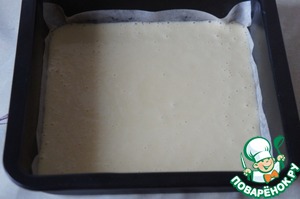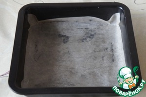 Квадратную форму 20 см смазать маслом и застелить пекарской бумагой, которую тоже смазать маслом. -