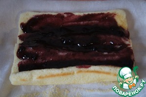 Развернуть рулет и смазать джемом.