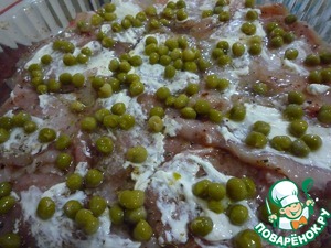 • Выложить равномерно зеленый горошек.