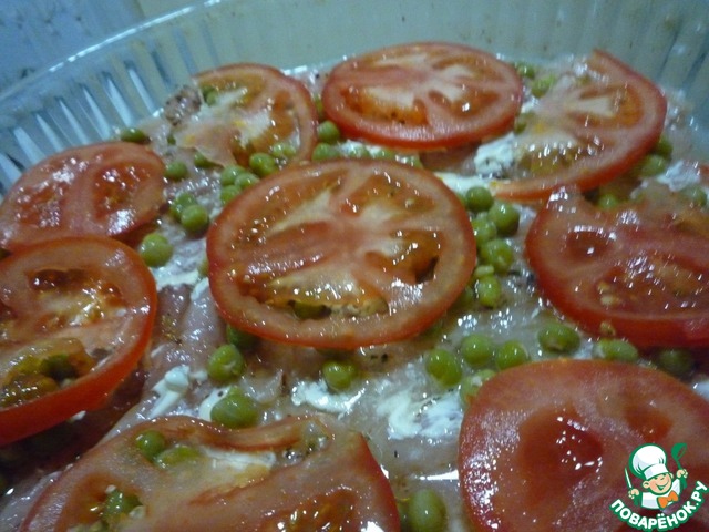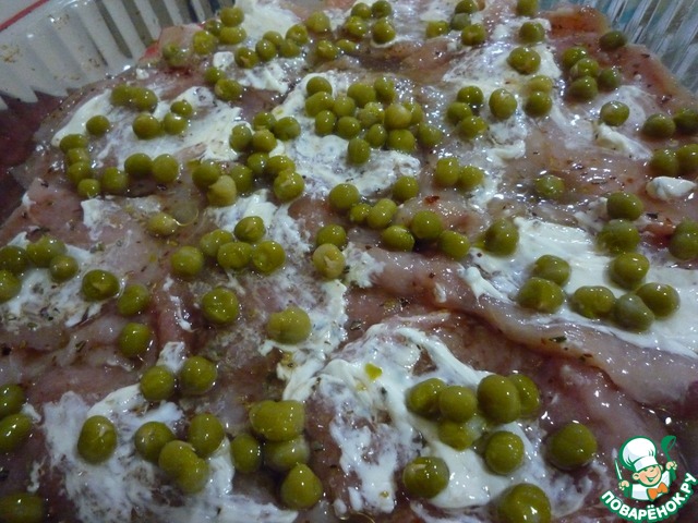 Очень вкусное и нарядное куриное филе получилось! Готовила без зеленого горошка, всем понравилось, спасибо за рецепт!