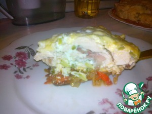Рецепт «Курица с грудинкой на овощной подушке»: