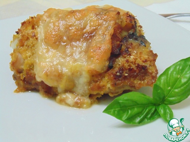 После того, как курочка приготовится, выключить мультиварку и дать курочке немного постоять под крышкой, отдохнуть. Моцарелла полностью впитается в сырно-хлебную корочку и придаст дополнительный вкус и аромат.