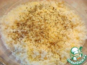 В миске смешать хлебные крошки, пармезан и прованские травы.