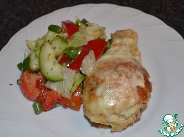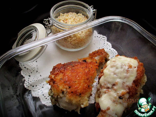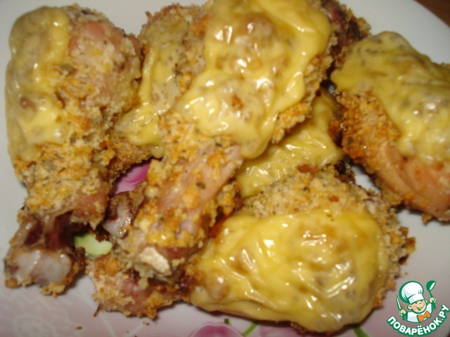 Рецепт «Куриные голени в хлебной панировке с сырами»: