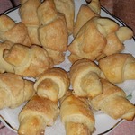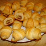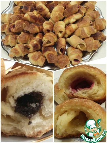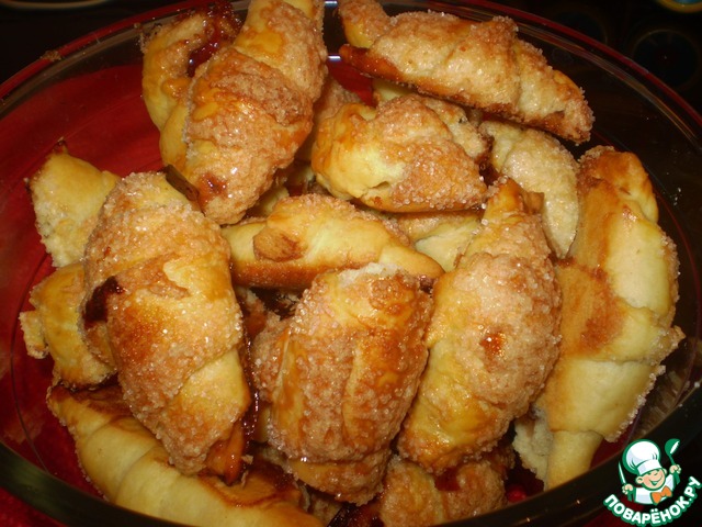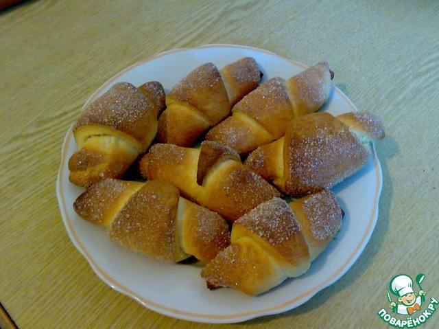 Огромный плюс этих рогаликов - быстрота приготовления. Несмотря на то, что тесто дрожжевое, готовится оно не совсем традиционным способом. Получается одинаково хорошо как у опытных хозяек, так и у тех, кто панически до этого боялся дрожжевого теста. Сейчас уже и не припомню, как ко мне попал этот рецепт, но прижился в семье он давно и разошёлся по подругам. Одной моей незамужней подруге даже помогает производить впечатление на мужчин... Спешу поделиться с вами этим секретным оружием)