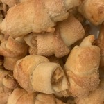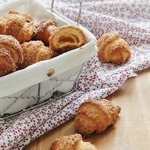 Ещё одно преимущество этого рецепта в том, что рогалики можно заморозить и в нужный момент испечь. Я отправляю их из морозилки прямо в духовку, не размораживая, только время выпечки нужно увеличить минут на пять. Если рогалики будут большего размера, то дайте им немного разморозиться перед выпечкой.