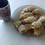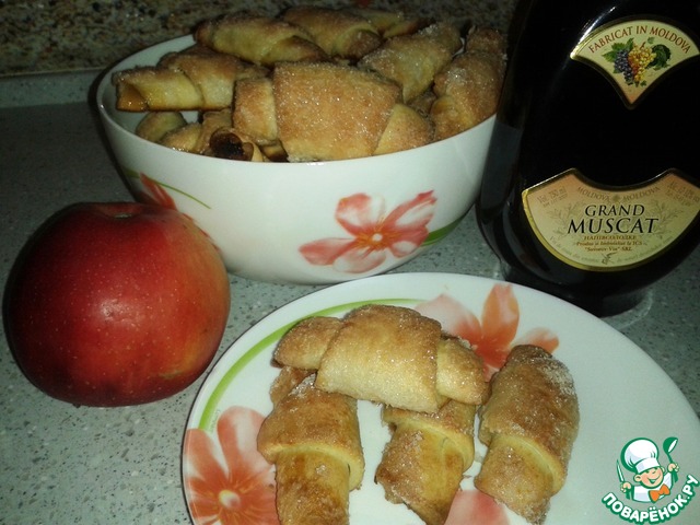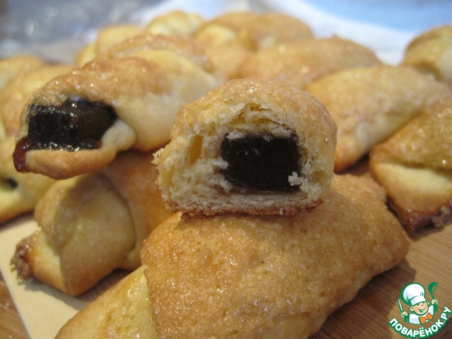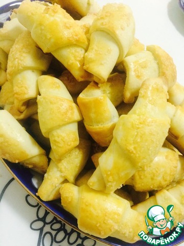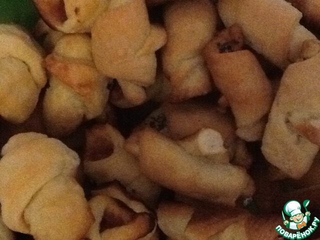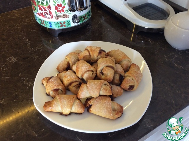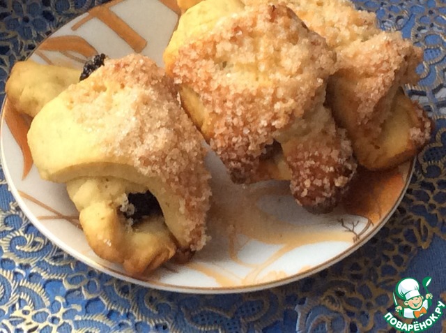 Выпекать при температуре 200 градусов примерно 12-15 минут. Смотрите по своей духовке, если будете делать рогалики бОльшего размера, соответственно и время выпечки увеличить. -
