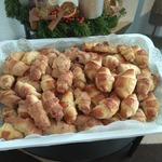 Разделить тесто на 6-8 частей и убрать в морозилку на 30 минут. Я делала половину порции, и рогалики предпочитаю небольшого размера на 2 укуса) Из целой порции выходит очень много рогаликов, точное количество не считала, примерно три противня. -
