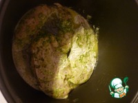 Куриные грудки достаньте из маринада и обваляйте в муке. Выложите в чашу мультиварки и обжаривайте с обеих сторон по 5 минут. |