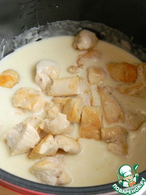 Выливаем сливки. Солим и перчим. Немного провариваем.