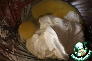 Смешать сметану, сахар, яйца. Сделать заливку