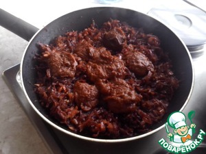 Выкладываем на разогретую с маслом (я люблю нерафинированное) сковородку лук, морковку и свеклу. Обжариваем все это 10-15 минут.