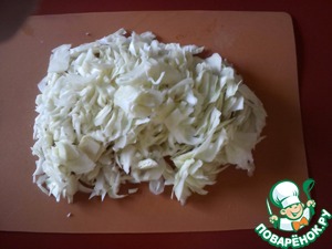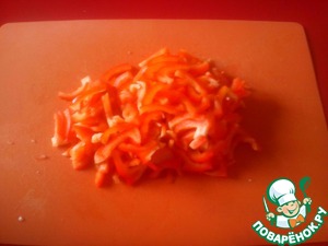 В то время пока варится картошка и капуста, шинкуем болгарский перец.