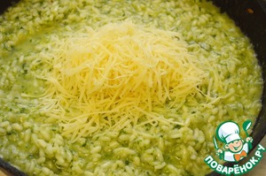 Затем добавить натертый на мелкой терке пармезан, перемешать. Посолить, поперчить, добавить лимонный сок по вкусу.