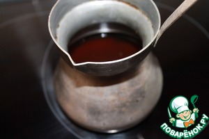 Сварить натуральный молотый обжаренный кофе по вашему любимому рецепту. Процедить, отмерить 5 ложек и добавить к нему ложку сахара, размешать