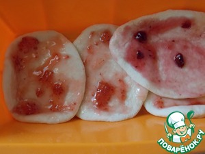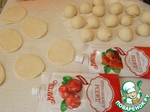 Половину лепешек смазываем джемом клубничным, а другую половину клюквенным джемом. Клубничный даст аромат, а клюквенный кислинку.