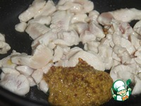 Перекладываем начинку в отдельную посуду, а в мультиварку выкладываем курицу с горчицей. Продолжаем готовить на той же программе еще 5-7 минут. |