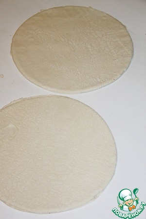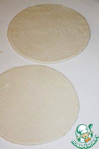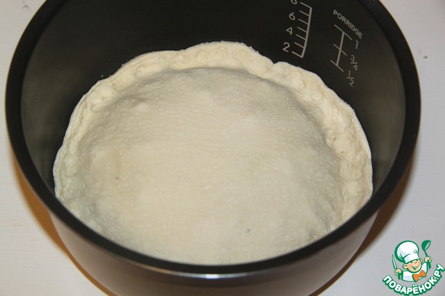 Слоеное бездрожжевое тесто раскатываем и вырезаем 2 круга по размеру мультиварки.