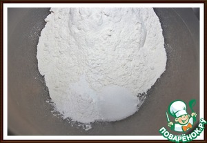 5. Тесто: Соедините муку, разрыхлитель, соду и соль и перемешайте.