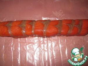 С помощью пленки сформовать рулет, положить в холодильник на 30 минут или больше.