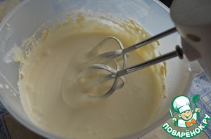 Взбиваем миксером сливки, добавляем остывший желатин и творожную массу с джемом.