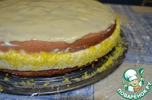 Заливаем верх нашего тортика. Даем еще немного застыть. -