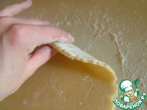 Охлажденное тесто раскатываем до толщины 0,5 см.