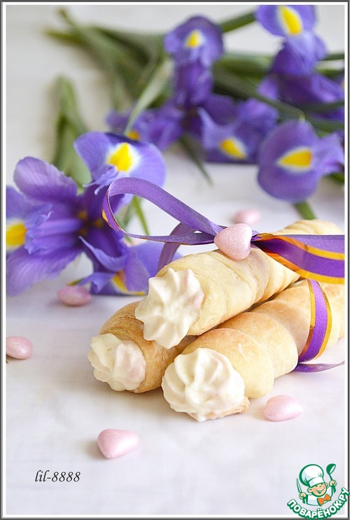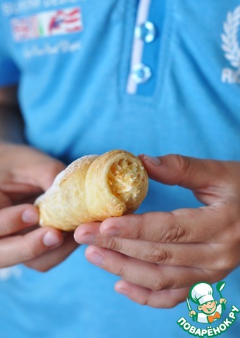 Рецепт «Мини-трубочки из слоеного теста с кремом»: