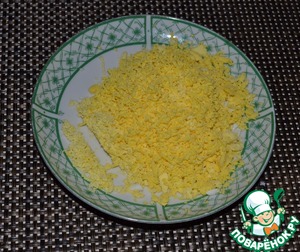 Отварить рис в подсоленной воде, промыть его и процедить. Яйца отварить, охладить, очистить, отделить белок от желтка.