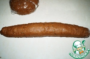 Делаем последний виток. Запечатываем шов. Перекатываем заготовку швом вниз и слегка катаем ее чуть согнутыми ладошками от центра к краям, растягивая заготовку в длину.
