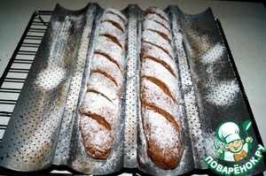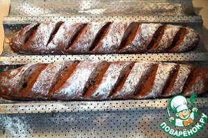 Я буду расстаивать и печь эти заготовки на багетном протвиньке. Можно печь на любом противне. Просто мне нравится круглый низ хлебушка))) Посыпаем противень (бумагу для выпечки) слегка мукой. Укладываем заготовки. Припорашиваем мукой и надрезаем. Накрываем салфеткой и убираем в теплое место для расстойки на 1 час.