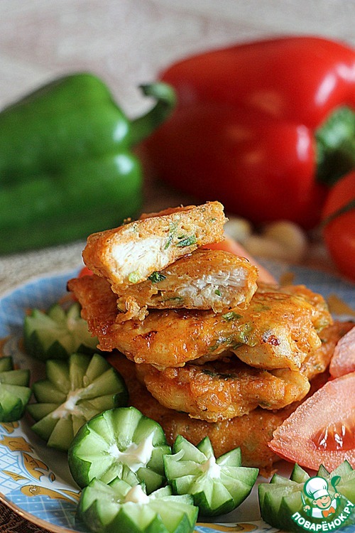 Жарила на сковороде, мультя занята, потом промокала салфетками. Сделала на основе творожного сыра соус с травами и мариноваными огурчиками, правда всё без чеснока (врач), мой муж ест курицу и ему нравится!