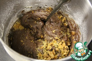 Затем добавляем растопленный шоколад с маслом, смешиваем