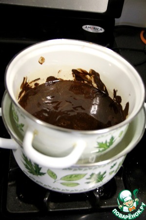 200 г сливочного масла и шоколад поставить на водяную баню и, время от времени помешивая, довести до полного растворения. Как только масло и шоколад растворятся, сразу снять с огня. Не давать массе сильно нагреться!