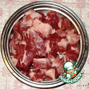 Добавить в мясо и перемешать. Поставить мариноваться в холодильник.