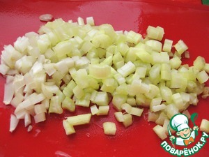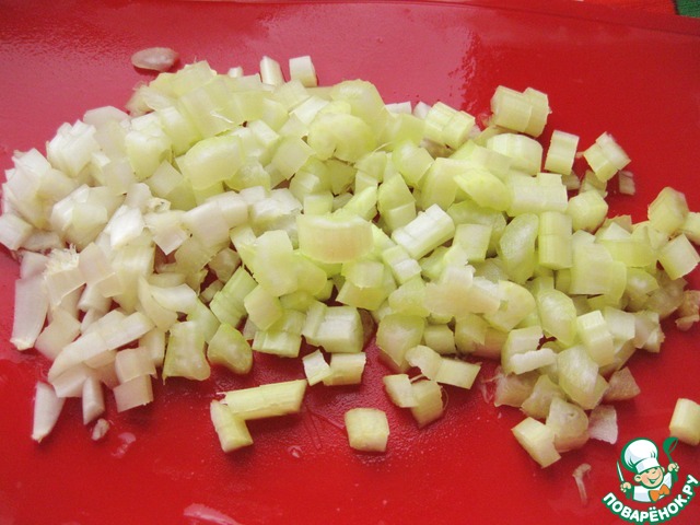 Помыть стебли сельдерея и нарезать небольшими кусочками.