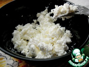 Сделать заправку. Творог растереть вилкой. Добавить сметану и лимонный сок и тщательно перемешать.