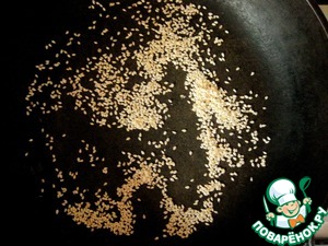 Поджарить на сухой сковороде кунжутные семечки.