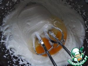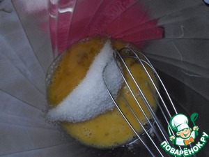 Смешиваем яичную смесь со 150 г сахара.